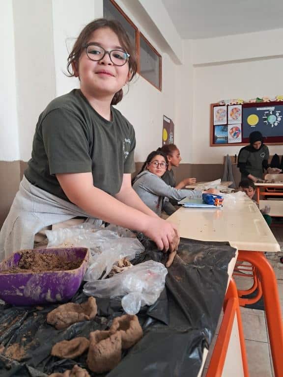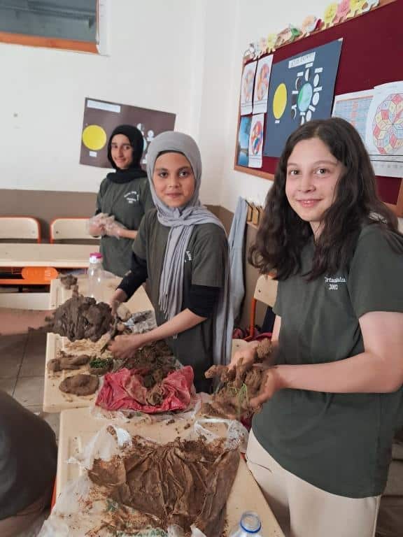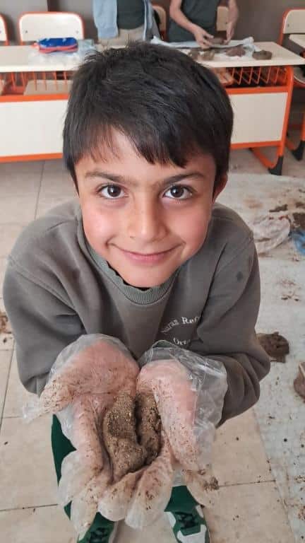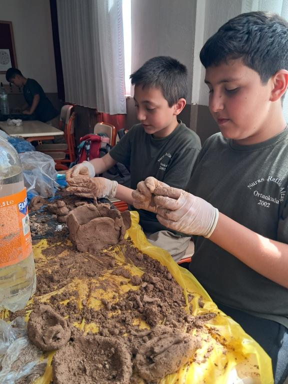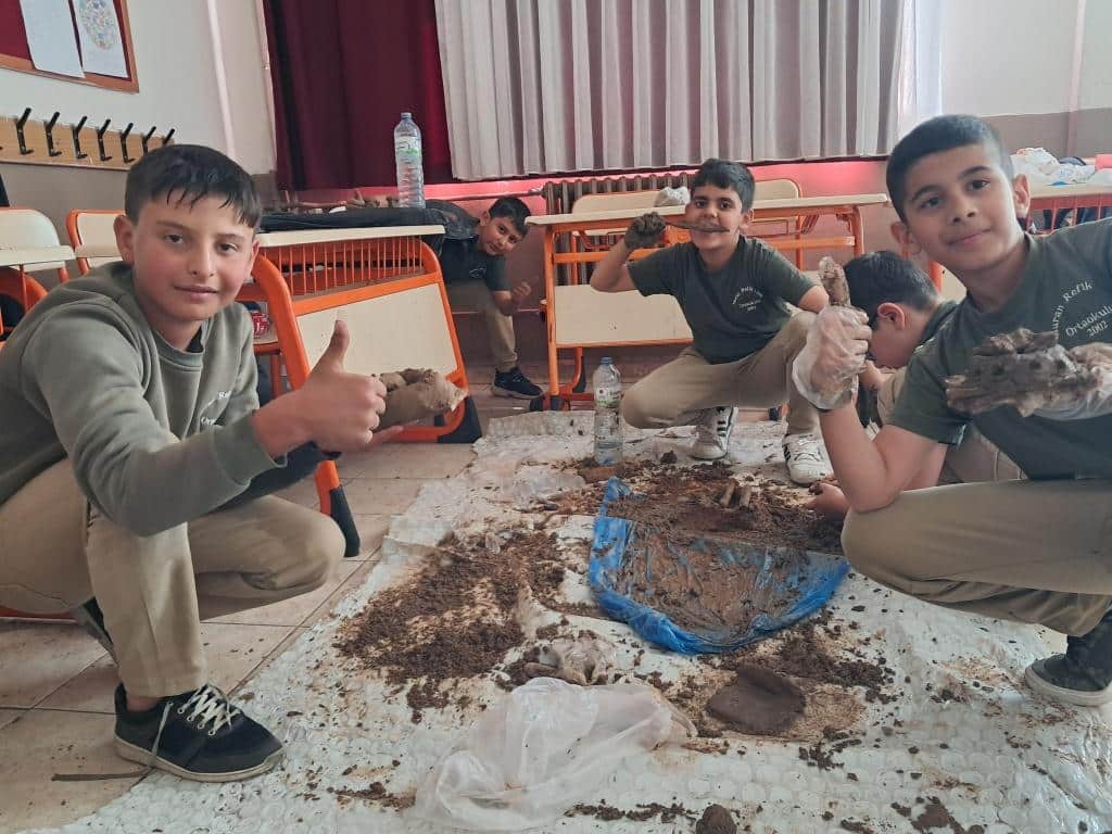 Türkçe dersimizde "Çömlekçilik" metni kapsamında sınıf ortamına uyarladığımız "Çamurdan Şekil Yapma" etkinliğimizi gerçekleştirdik. Öğrencilerimiz hem gülüp eğlenirken hem de yaratıcılıklarını ortaya çıkardılar.