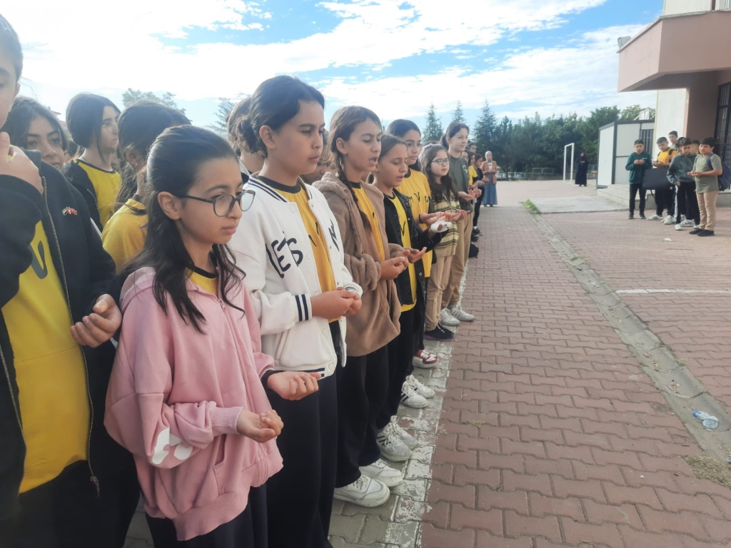 Okulumuzda, dünyanın gözü önünde yaşanan insanlık dramına dikkat çekmek ve Filistin halkına destek olmak amacıyla anlamlı bir etkinlik düzenlendi. Milli Eğitim Bakanlığımızdan gönderilen yazı doğrultusunda, tüm okullarda eş zamanlı olarak okulumumuzda da öğrencilerin katılımıyla "Filistin ve Gazze temalı farkındalık etkinlikleri" düzenlendi.